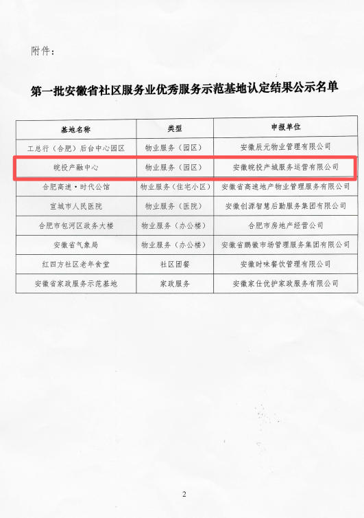 近日,由安徽省社區(qū)服務(wù)業(yè)協(xié)會(huì)和新安晚報(bào)社組織的安徽省社區(qū)服務(wù)業(yè)優(yōu)秀服務(wù)示范基地評(píng)選中,皖投服務(wù)公司在管項(xiàng)目皖投·產(chǎn)融中心憑借產(chǎn)業(yè)服務(wù)、智慧化管理、多業(yè)態(tài)融合等領(lǐng)域的突出實(shí)踐和優(yōu)異表現(xiàn)榮獲“第一批安徽省社區(qū)服務(wù)業(yè)優(yōu)秀服務(wù)示范基地”。