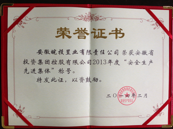 置業(yè)公司榮獲2013年度“安全生產(chǎn)先進(jìn)集體”稱號(hào)