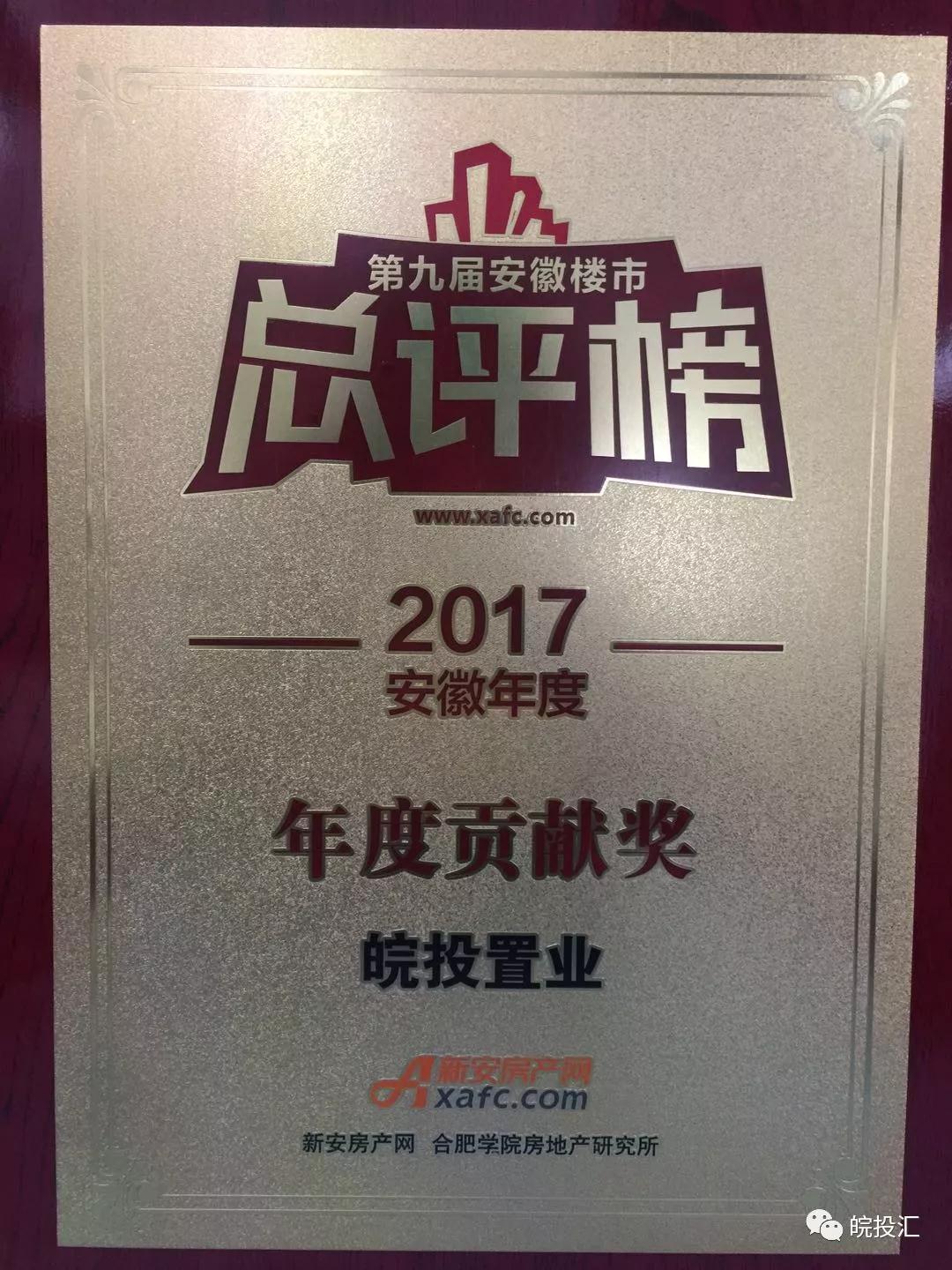 皖投置業(yè)榮獲安徽樓市總評(píng)榜年度貢獻(xiàn)獎(jiǎng);合肥皖投天下名筑榮獲金樽獎(jiǎng)人居典范樓盤(pán)獎(jiǎng)!