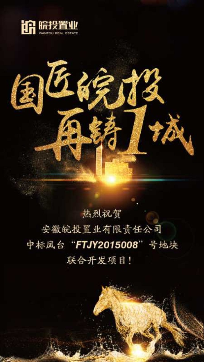 皖投置業(yè)成功中標(biāo)鳳臺(tái)“FTJY2015008”號(hào)地塊聯(lián)合開發(fā)項(xiàng)目