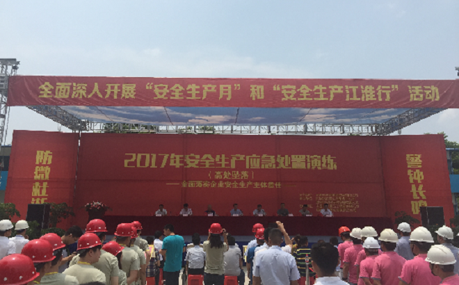 為全面貫徹落實(shí)各級(jí)政府部門、集團(tuán)公司關(guān)于安全生產(chǎn)月活動(dòng)的重要精神,開展以“全面落實(shí)企業(yè)安全生產(chǎn)主體責(zé)任”為主題的 “安全生產(chǎn)月”活動(dòng),進(jìn)一步提高公司各在建項(xiàng)目的安全生產(chǎn)意識(shí),2017年6月28日,由集團(tuán)公司主辦,置業(yè)公司、阜陽城市公司承辦,于阜陽濱河花園工程項(xiàng)目部施工現(xiàn)場(chǎng)舉行2017年安全生產(chǎn)應(yīng)急處置演練。