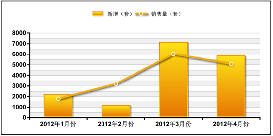 2012年4月份合肥市住宅類商品房的銷售量環(huán)比出現(xiàn)了明顯幅度下跌的現(xiàn)象,但是本月期間的銷售量仍然超過了5000套,這也是自2011年4月份以來首次出現(xiàn)銷售量連續(xù)兩月超過5000套的情況。