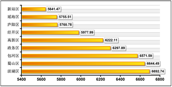本月期間的政務(wù)區(qū)和濱湖區(qū)的銷售均價(jià)是較之上月期間出現(xiàn)了大幅度下跌的現(xiàn)象。政務(wù)區(qū)湖東景園項(xiàng)目本月期間的銷售量提升拉倒了區(qū)屬的銷售均價(jià),使得政務(wù)區(qū)成為區(qū)屬銷售均價(jià)下跌幅度最大的區(qū)域,而濱湖區(qū)旭輝御府銷售量的大幅度上漲也一定程度的拉低了濱湖區(qū)的銷售均價(jià)。