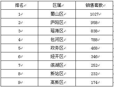 2012年4月份份合肥住宅區(qū)屬銷售均價(jià)排行榜