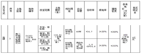 據(jù)合肥招標(biāo)投標(biāo)中心網(wǎng)公告顯示,包河區(qū)S1203號(hào)宗地座落于南二環(huán)路與宿松路西南交口,四至范圍:東至宿松路、南至黟縣路規(guī)劃中心線、西至宏村路規(guī)劃中心線、北至南二環(huán)路,出讓面積達(dá)116.61畝。分為B03、B06兩個(gè)地塊,其中,B03地塊規(guī)劃用于商業(yè)辦公,出讓40年、容積率≤6.7;B06地塊規(guī)劃用于商業(yè)辦公住宅,商業(yè)辦公出讓40年,住宅出讓70年,容積率1.0 &l;R&l; SPAN&g;≤4.6。參考地價(jià)400萬/畝,繳納競(jìng)買保證金1億元。