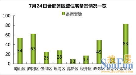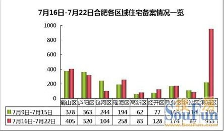 濱湖區(qū)銷量連登九區(qū)榜首 2012年7月16日-7月22日合肥住宅類商品房的總備案套數(shù)為2514套,備案量環(huán)比增長(zhǎng)38.13%,年后單周備案量首次破兩千套;其中7月17日備案量高達(dá)762套,這是年后首次單日備案超700套。