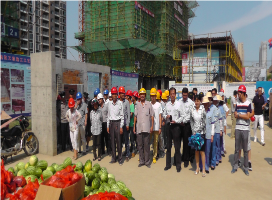 活動第一站來到合肥城市公司天下錦城R3地塊項目部。在施工現(xiàn)場,分管領導首先對在高溫下堅持工作的一線職工表示親切慰問,叮囑大家在完成工作任務的同時,更要注意自身的身體健康和生產(chǎn)安全。他要求,各地塊施工單位要進一步加強高溫季節(jié)職工勞動保護和防暑降溫工作,要加強對高溫、高濕、高空、露天作業(yè)的場所的監(jiān)督檢查,督促各參建單位嚴格執(zhí)行高溫作業(yè)的有關規(guī)定,調(diào)整好作業(yè)時間,確保高溫期間一線職工的生產(chǎn)生活安全健康。據(jù)悉,活動還將陸續(xù)前往安慶、蚌埠、阜陽等城市公司,向當?shù)貖^斗在一線的工人送去“關愛”和“清涼”。
