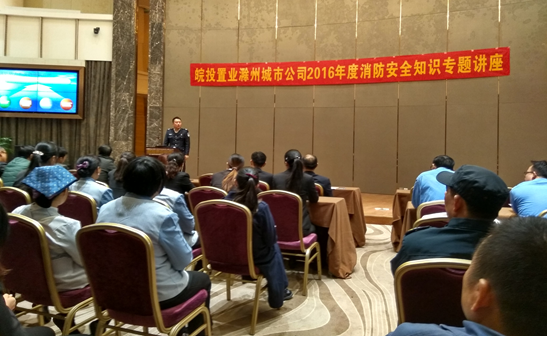 為切實(shí)做好酒店消防安全工作,全面強(qiáng)化員工防火意識(shí),普及消防安全知識(shí),2016年11月8日上午,皖投.齊云山莊酒店舉辦消防安全知識(shí)專題培訓(xùn)講座,特邀滁州市政安消防技術(shù)服務(wù)有限責(zé)任公司蔣飛教官授課,酒店及皖投置業(yè)滁州城市公司近八十人參加培訓(xùn)?!?/p>