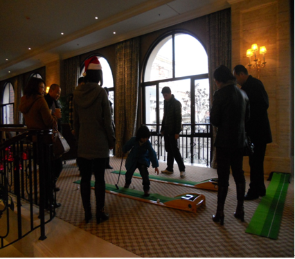 當(dāng)天上午天下錦城營銷中心內(nèi)部氣氛活躍?;顒由形凑介_始,廣大新老客戶就紛紛前來現(xiàn)場咨詢活動詳情、等待參加。根據(jù)安排,本次圣誕嘉年華活動包括“投籃”、“模擬高爾夫賽道”、“大富翁”、“關(guān)注天下錦城微博”等。節(jié)目豐富內(nèi)容精彩、過程緊張而不乏趣味,并設(shè)多重獎項禮品精致炫目!同時細(xì)心的工作人員還為參加此次嘉年華的客戶準(zhǔn)備了精美的甜品飲料。娛樂之余盡情體驗英倫貴族品質(zhì)生活空間,據(jù)悉有客戶當(dāng)即認(rèn)籌成功,為表示對廣大新老客戶的長期支持與關(guān)注,本次活動將一直持續(xù)到元旦佳節(jié)。