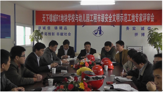 2011年11月18日上午,公司組織天下錦城R1地塊學(xué)校及幼兒園工程創(chuàng)建市級安全文明示范工地專家評審會,合肥市質(zhì)量安全監(jiān)督站、安徽水安公司、合肥工大監(jiān)理領(lǐng)導(dǎo),以及天下錦城項(xiàng)目部代表參加。