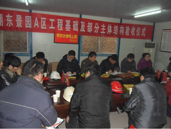2012年元月13日,湖東景園項(xiàng)目A地塊工程順利通過基礎(chǔ)工程及十五層以下主體結(jié)構(gòu)驗(yàn)收。政務(wù)區(qū)質(zhì)量監(jiān)督站、湖東景園項(xiàng)目部、上海華東設(shè)計(jì)院、南巽監(jiān)理公司、安徽三建公司A地塊項(xiàng)目部相關(guān)人員參加了驗(yàn)收。