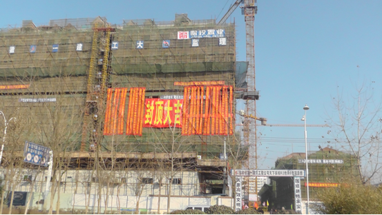 2013年1月18日,天下錦城R2地塊施工現(xiàn)場內(nèi)彩旗飄揚,鞭炮齊鳴,在天下錦城項目部、合工大監(jiān)理及施工單位的見證下,天下錦城R2地塊A、B包工程正式完成主體結構的封頂。