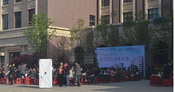 2013年4月13日,公司天下錦城項(xiàng)目二期二組團(tuán)正式開盤。4月天已經(jīng)驕陽(yáng)似火,但仍擋不住購(gòu)房者的熱情。此次一共推出4#、5#、6#樓3棟11+1新品小高層共166套房源,大部分房源被搶購(gòu)一空,將4月份樓市推向新高。