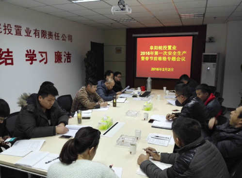 會(huì)議先后傳達(dá)了《集團(tuán)公司安全生產(chǎn)委員會(huì)會(huì)議紀(jì)要》(2016年01號(hào))、安徽省委辦公廳及省人民政府辦公廳《關(guān)于做好2016年元旦春節(jié)期間有關(guān)工作的通知》文件精神和置業(yè)公司2016年第一次安全生產(chǎn)工作會(huì)會(huì)議精神。隨后項(xiàng)目監(jiān)理、總包單位分別匯報(bào)了2016年關(guān)于安全生產(chǎn)工作開展思路。根據(jù)項(xiàng)目實(shí)際情況,會(huì)議要求各單位要結(jié)合現(xiàn)場(chǎng)、明確主體、責(zé)任到人,做好節(jié)假日期間維穩(wěn)預(yù)案,確保2016年項(xiàng)目安全無事故。