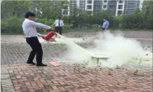 按照酒店滅火演練方案,演練活動(dòng)在酒店北停車場(chǎng)舉行,保安事先疏導(dǎo)車輛停放到安全區(qū)域遠(yuǎn)離演練現(xiàn)場(chǎng)。下午14時(shí),酒店員工準(zhǔn)時(shí)到滅火演練指定地點(diǎn)集合,綜保部人員做好布置演練火場(chǎng)準(zhǔn)備,救援組負(fù)責(zé)隨時(shí)救護(hù)傷員。演練開(kāi)始前,首先由安保部主管講解消除火災(zāi)隱患排查,宣講消防安全“四個(gè)能力”知識(shí),消防安全注意事項(xiàng),示范滅火器的使用方法。隨后,員工按部門(mén)依次兩兩一組,進(jìn)行滅火器滅火操作,演練過(guò)程緊張有序。