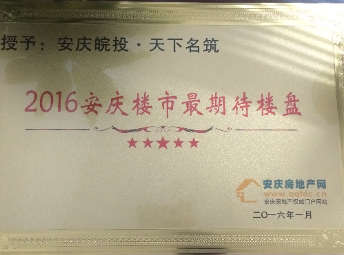 2016年1月28日,皖投同安公司開發(fā)運(yùn)營的安慶天下名筑項(xiàng)目榮耀摘得“2016安慶樓市最期待樓盤”。該獎項(xiàng)的摘得,對皖投同安全體員工來說,是極大的鼓舞,也為項(xiàng)目努力為廣大業(yè)主打造優(yōu)質(zhì)的居住環(huán)境的目標(biāo)給予肯定。在后續(xù)的開發(fā)建設(shè)中,全體皖投同安人有信心、有恒心、有誠心將項(xiàng)目傾力打造成安慶市東部新城“政務(wù)中心·康熙河畔,多業(yè)態(tài)、健康環(huán)保、高端智能化新型宜居宜商宜游社區(qū)”,也將為“彰顯皖投置業(yè)品牌,引領(lǐng)宜城商居市場”揮毫灑墨、奉獻(xiàn)青春、貢獻(xiàn)力量。