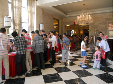 此次活動中到訪的所有客戶均將獲得一張祝??ㄆ?,客戶可以在祝福卡片上寫上自己對老師誠摯的祝福貼在祝福墻上,活動中將從中抽取10名客戶贈送禮品一份?;顒蝇F(xiàn)場還準(zhǔn)備了豐富多彩的其它活動:猜燈謎、月餅DIY、桌面足球等互動游戲,參與現(xiàn)場活動即可有機會獲得豐厚的獎品。持有活動邀請函的老師在活動結(jié)束時,憑邀請函還能兌換一份精美禮品。