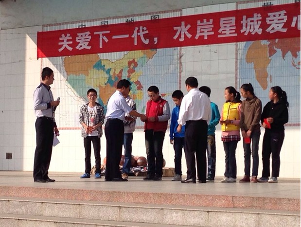 •“關(guān)愛下一代,傳遞正能量”——水岸星城愛心助學(xué)全椒三中學(xué)子 10月10日,皖投全椒分公司水岸星城項(xiàng)目組的工作人員早早的來到全椒第三中學(xué),通過“關(guān)愛下一代,傳遞正能量”愛心助學(xué)活動(dòng),給全椒三中學(xué)子們送上精心準(zhǔn)備的教科書、中外名著、體育器材等文體用品,為全椒第三中學(xué)的孩子們奉獻(xiàn)一份愛心。