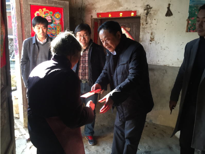 2016年1月19日由安徽省投資集團(tuán)黨委副書記李俊杰、黨群工作部主任郭武偉及皖投置業(yè)副總經(jīng)理謝東至帶領(lǐng)“愛心傳遞,真情永駐”扶貧捐助小組攜帶慰問品和愛心資金來到金寨縣水坪村的大山里。