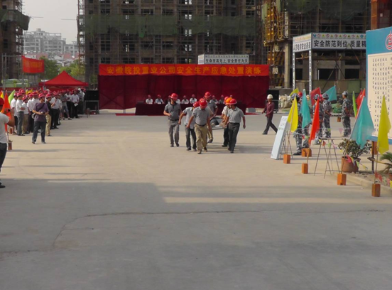為進(jìn)一步加強(qiáng)項(xiàng)目建設(shè)安全生產(chǎn)應(yīng)急預(yù)案體系建設(shè),提高應(yīng)對(duì)突發(fā)生產(chǎn)安全事故的能力,2012年6月25日下午,集團(tuán)公司安委會(huì)、置業(yè)公司與安徽三建公司、監(jiān)理公司等單位共同舉行了應(yīng)急演練活動(dòng)。