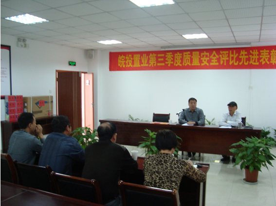 2012年10月15日下午,項(xiàng)目管理總監(jiān)丁昌華在公司會(huì)議一室主持召開了2012年三季度質(zhì)量安全評比表彰會(huì),工程管理部,皖投置業(yè)各項(xiàng)目部、施工單位、監(jiān)理單位的項(xiàng)目負(fù)責(zé)人及相關(guān)人員參加。