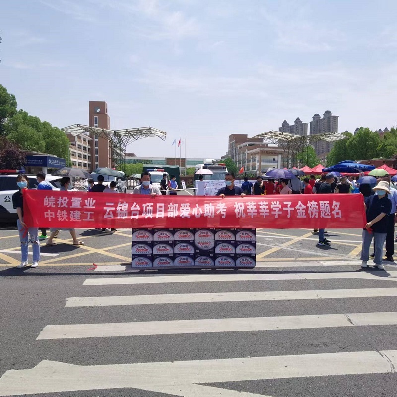2022-06一年一度的高考拉開序幕,莘莘學(xué)子即將奔赴考場,為夢起航。2022年6月7日上午,由皖投置業(yè)與中鐵建工云錦臺項目部聯(lián)合組織的主題為“云錦臺項目部愛心助考 祝莘...